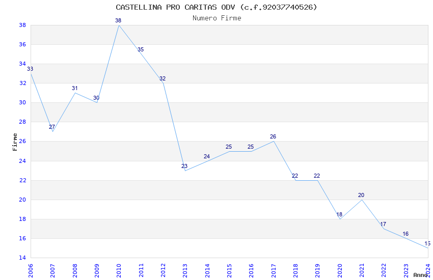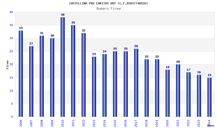 | Anno | Firme | Importi | Media | Naz. | Reg. | Prov. | Comu. |