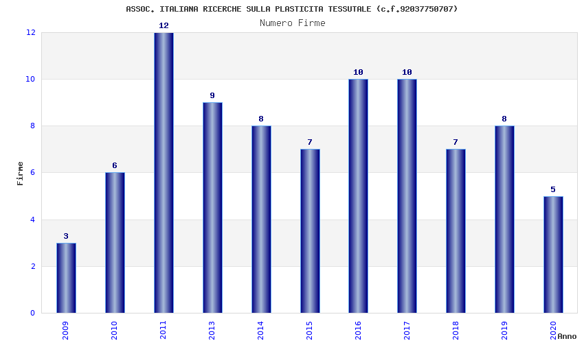 | Anno | Firme | Importi | Media | Naz. | Reg. | Prov. | Comu. |