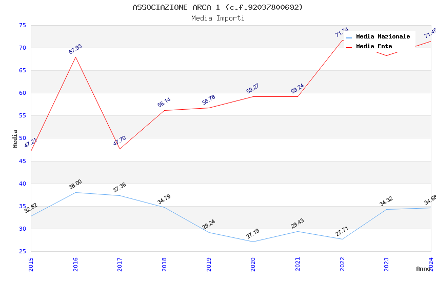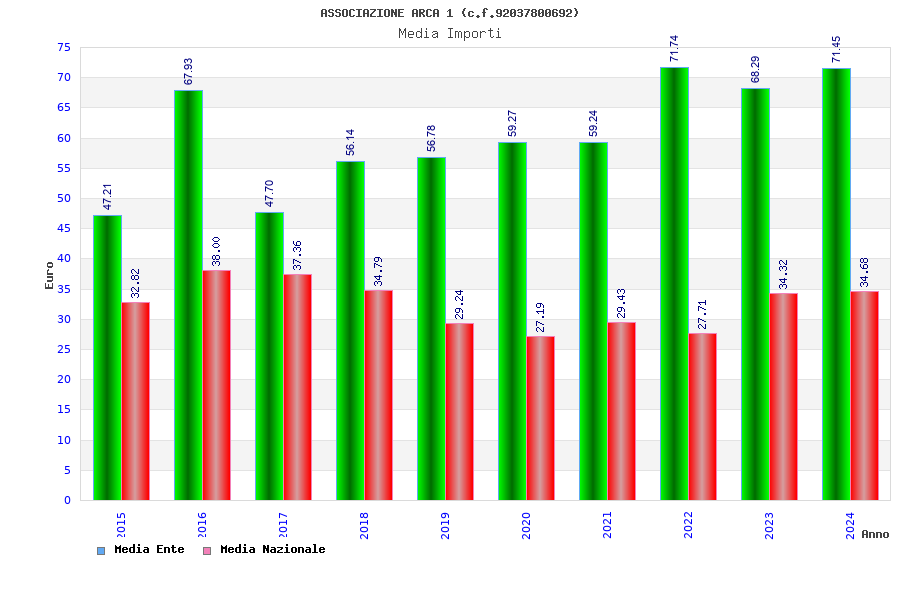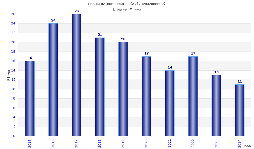 | Anno | Firme | Importi | Media | Naz. | Reg. | Prov. | Comu. |