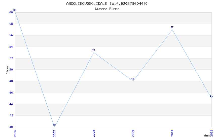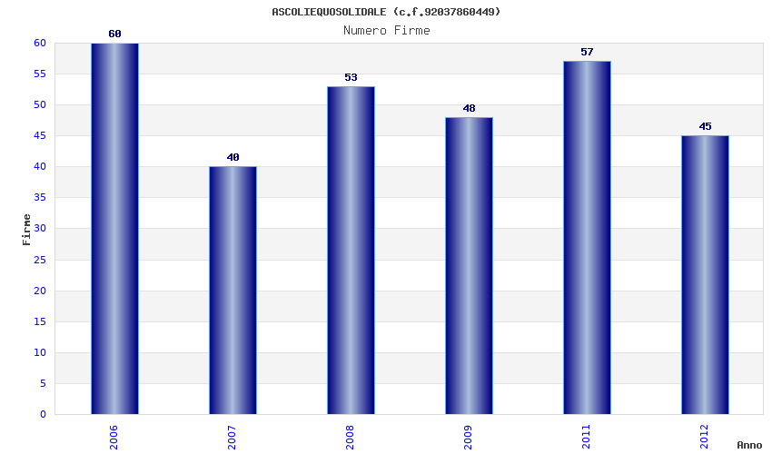 | Anno | Firme | Importi | Media | Naz. | Reg. | Prov. | Comu. |
