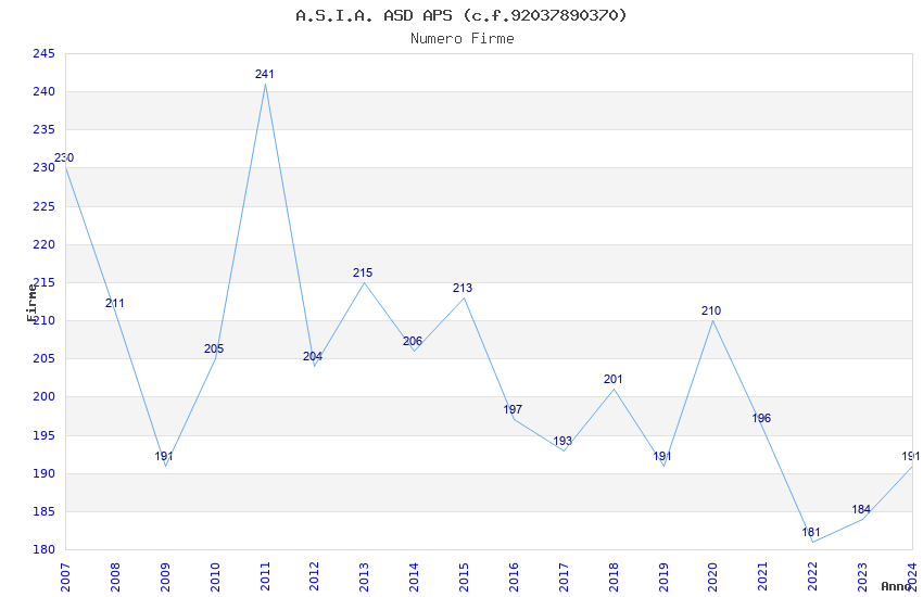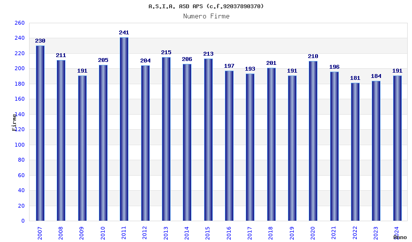 | Anno | Firme | Importi | Media | Naz. | Reg. | Prov. | Comu. |