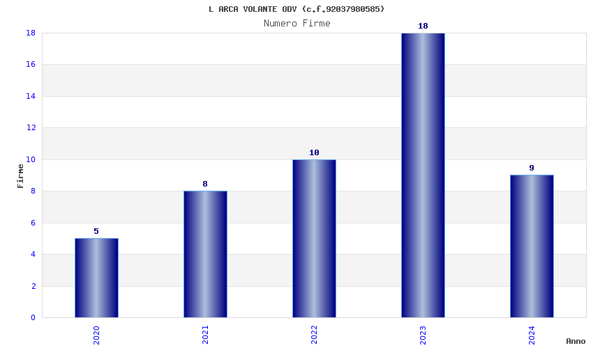 | Anno | Firme | Importi | Media | Naz. | Reg. | Prov. | Comu. |