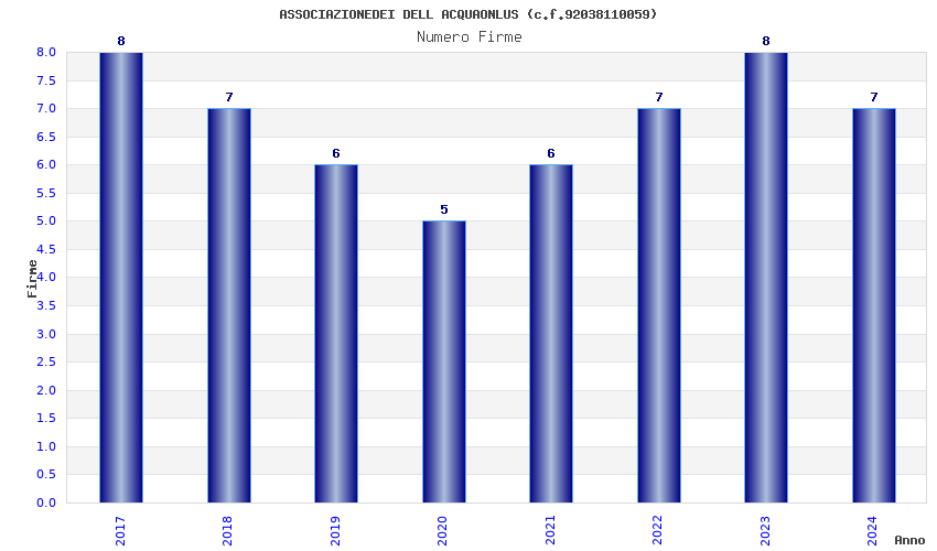 | Anno | Firme | Importi | Media | Naz. | Reg. | Prov. | Comu. |