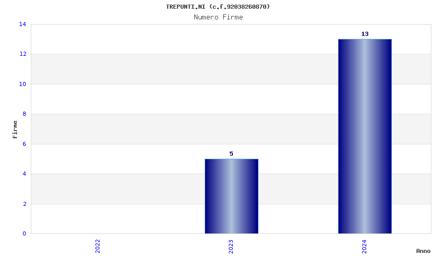 | Anno | Firme | Importi | Media | Naz. | Reg. | Prov. | Comu. |