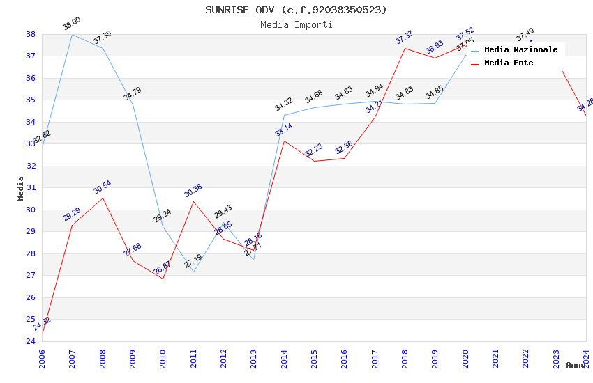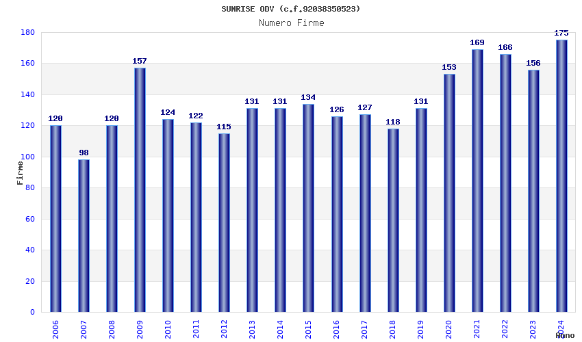 | Anno | Firme | Importi | Media | Naz. | Reg. | Prov. | Comu. |