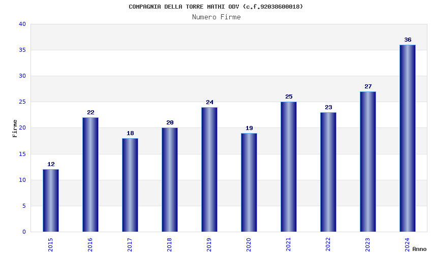 | Anno | Firme | Importi | Media | Naz. | Reg. | Prov. | Comu. |