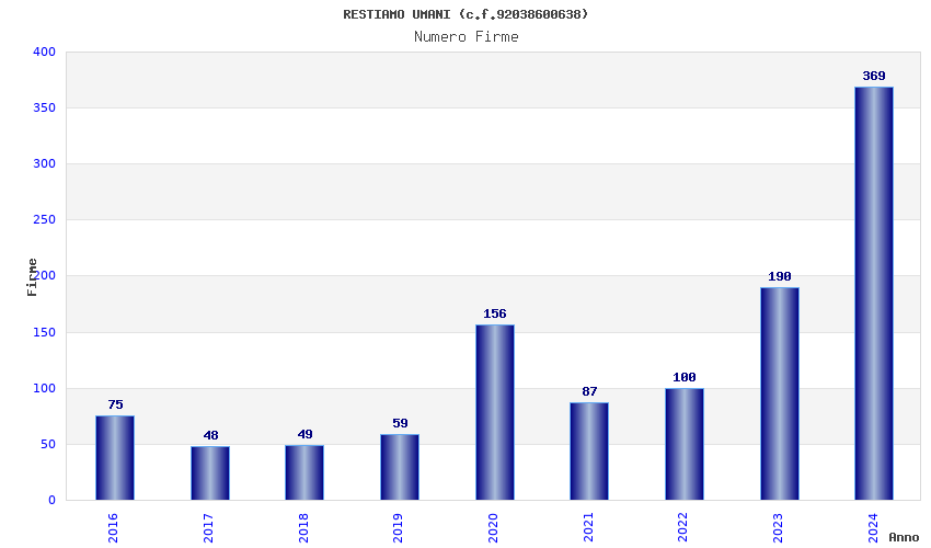| Anno | Firme | Importi | Media | Naz. | Reg. | Prov. | Comu. |