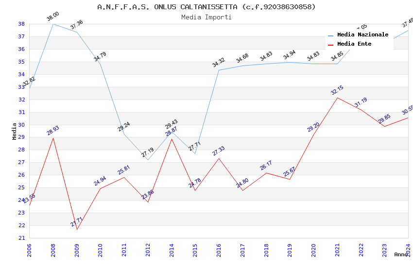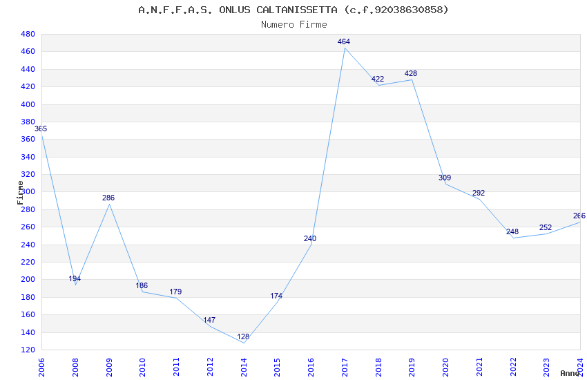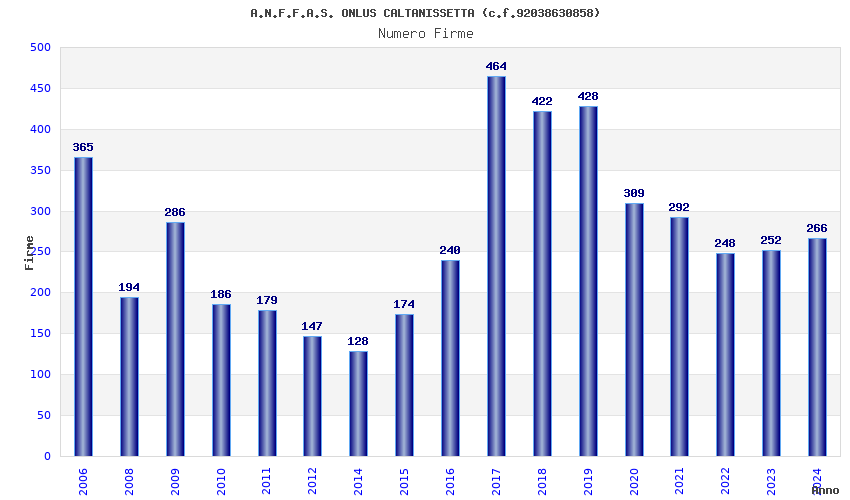 | Anno | Firme | Importi | Media | Naz. | Reg. | Prov. | Comu. |