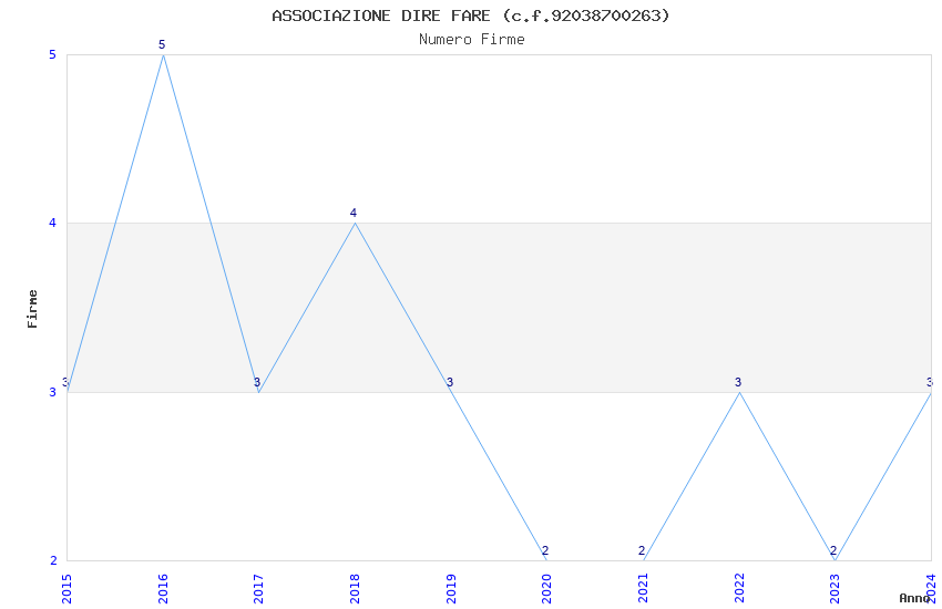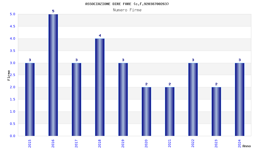 | Anno | Firme | Importi | Media | Naz. | Reg. | Prov. | Comu. |