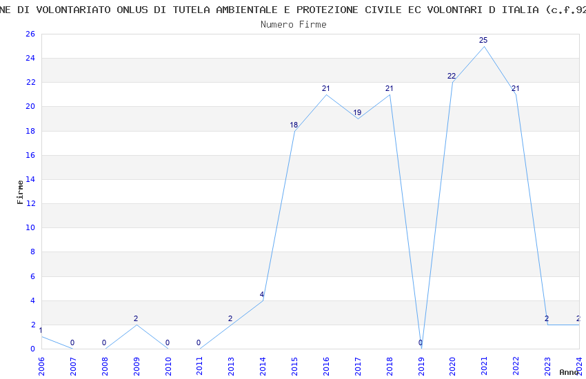 | Anno | Firme | Importi | Media | Naz. | Reg. | Prov. | Comu. |