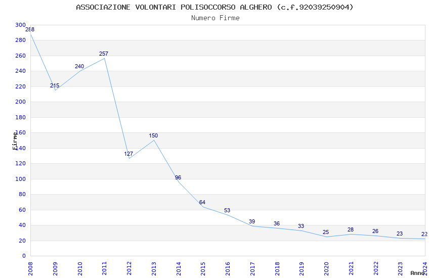 | 2024 | 22 | 427,51 | 19,43 | 54.009 | 1.305 | 303 | 27 |
