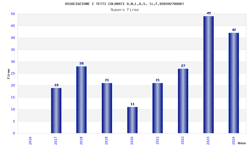 | Anno | Firme | Importi | Media | Naz. | Reg. | Prov. | Comu. |