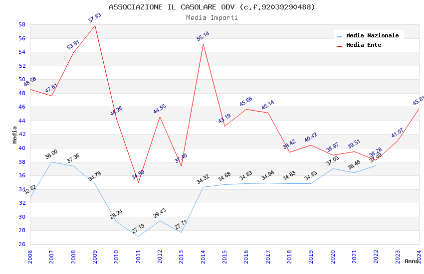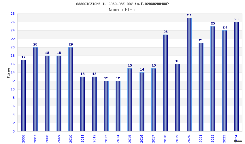 | Anno | Firme | Importi | Media | Naz. | Reg. | Prov. | Comu. |