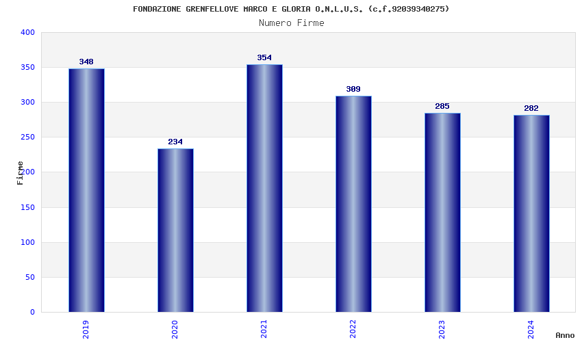 | Anno | Firme | Importi | Media | Naz. | Reg. | Prov. | Comu. |