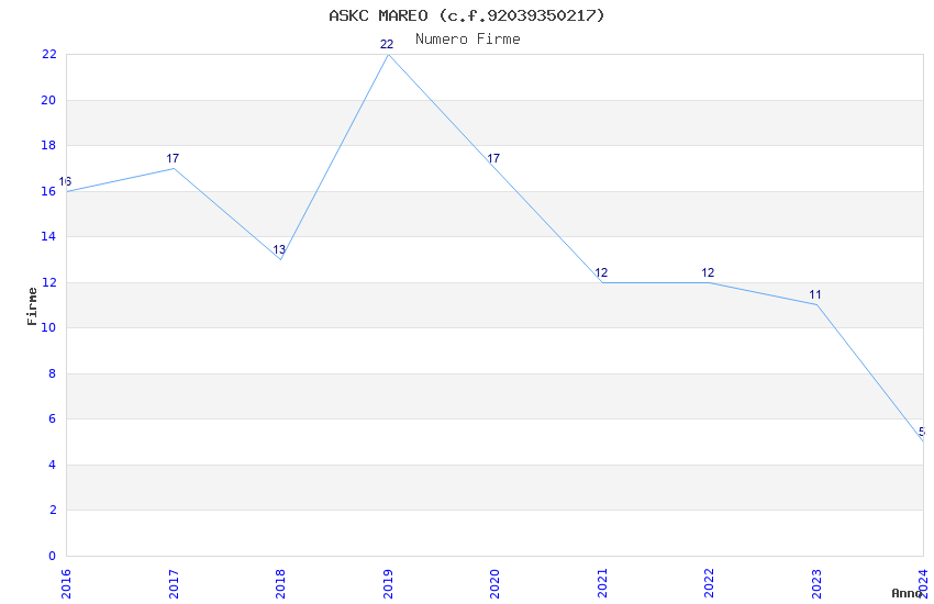 | 2019 | 22 | 616,80 | 28,04 | 43.070 | 1.614 | 817 | 5 |
