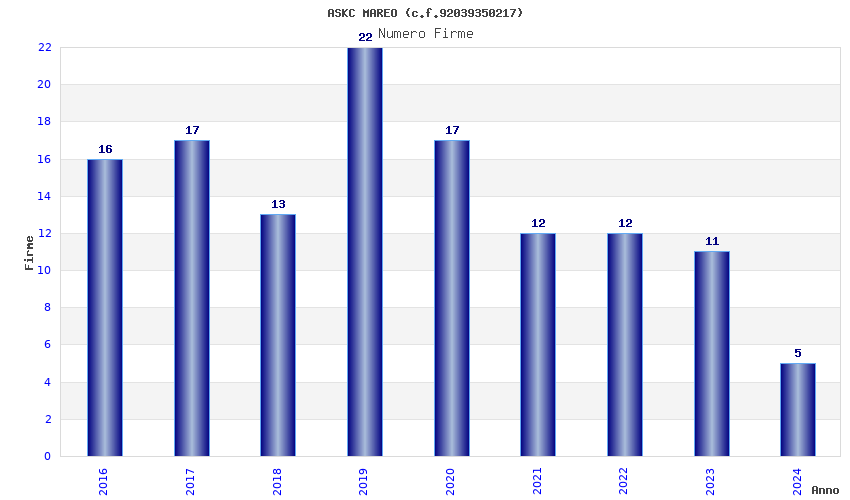 | Anno | Firme | Importi | Media | Naz. | Reg. | Prov. | Comu. |