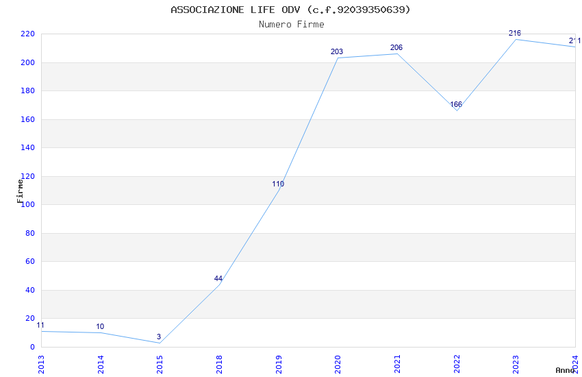 | 2024 | 211 | 5.667,19 | 26,86 | 9.399 | 648 | 366 | 6 |