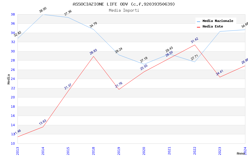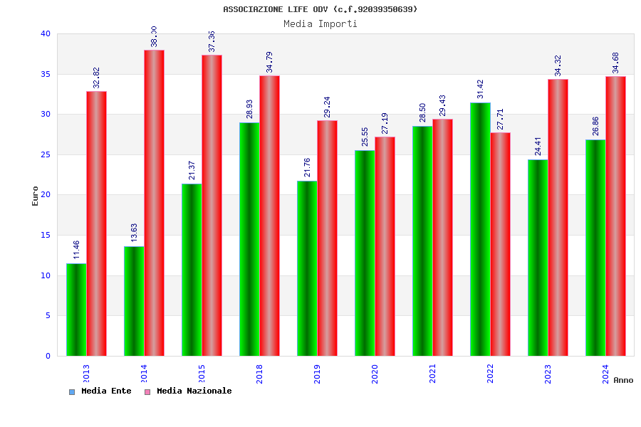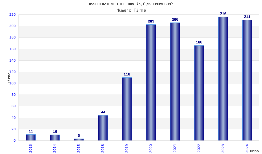 | Anno | Firme | Importi | Media | Naz. | Reg. | Prov. | Comu. |