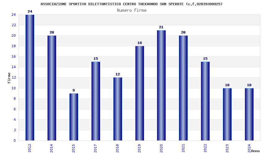 | Anno | Firme | Importi | Media | Naz. | Reg. | Prov. | Comu. |