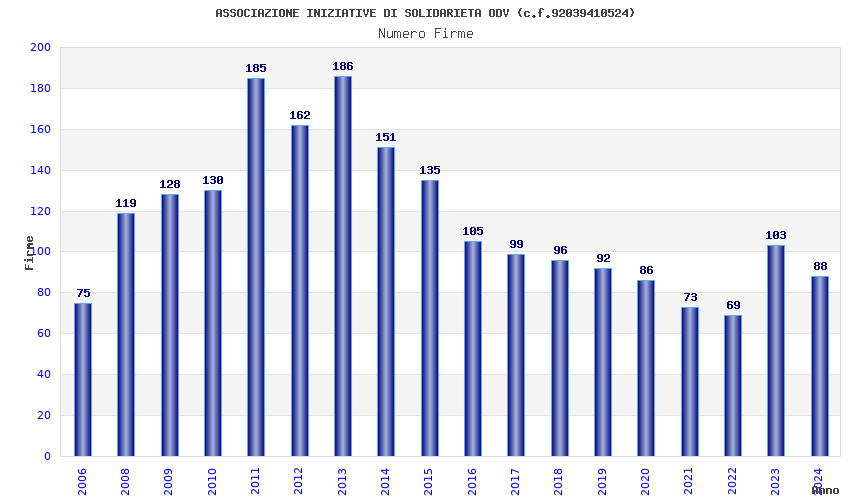 | Anno | Firme | Importi | Media | Naz. | Reg. | Prov. | Comu. |