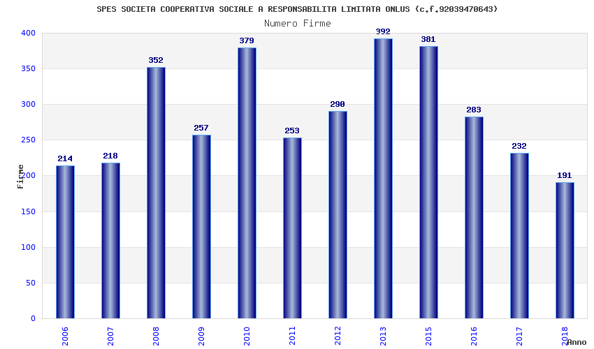 | Anno | Firme | Importi | Media | Naz. | Reg. | Prov. | Comu. |
