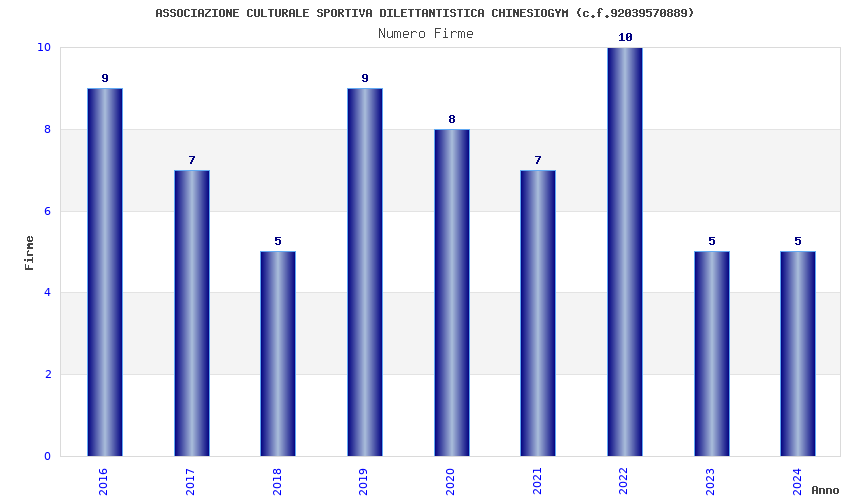 | Anno | Firme | Importi | Media | Naz. | Reg. | Prov. | Comu. |