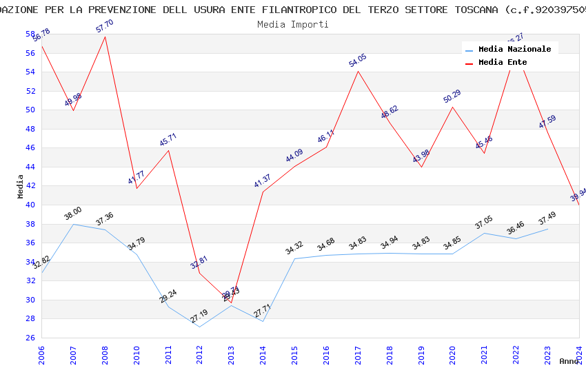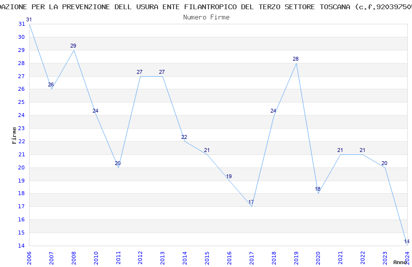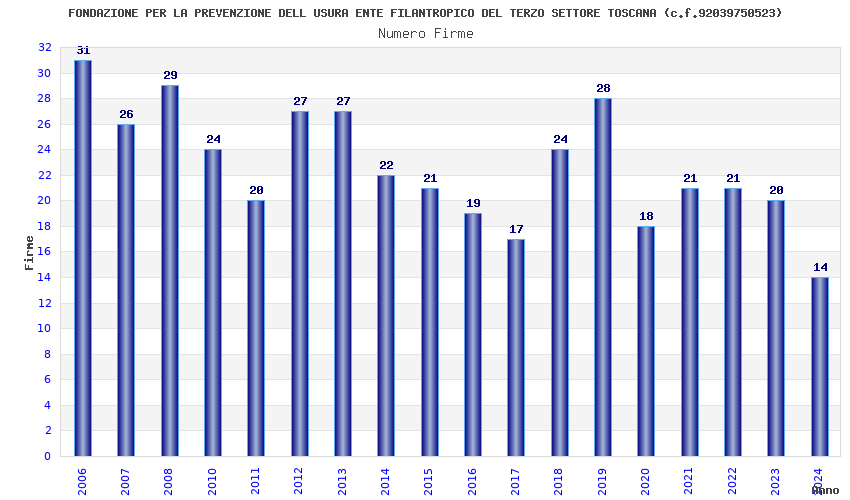 | Anno | Firme | Importi | Media | Naz. | Reg. | Prov. | Comu. |