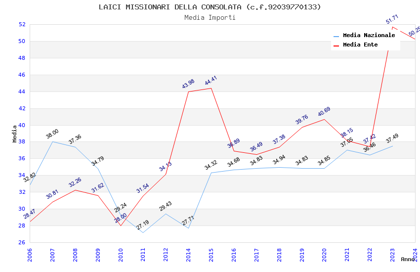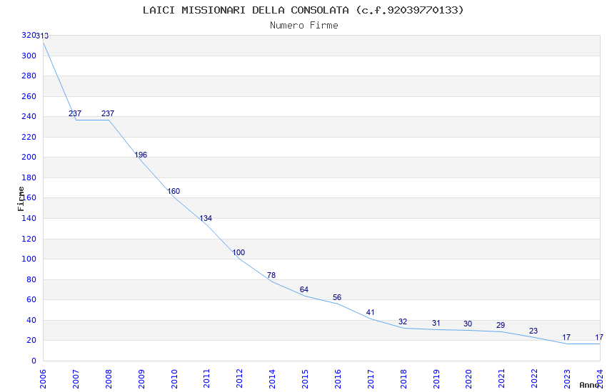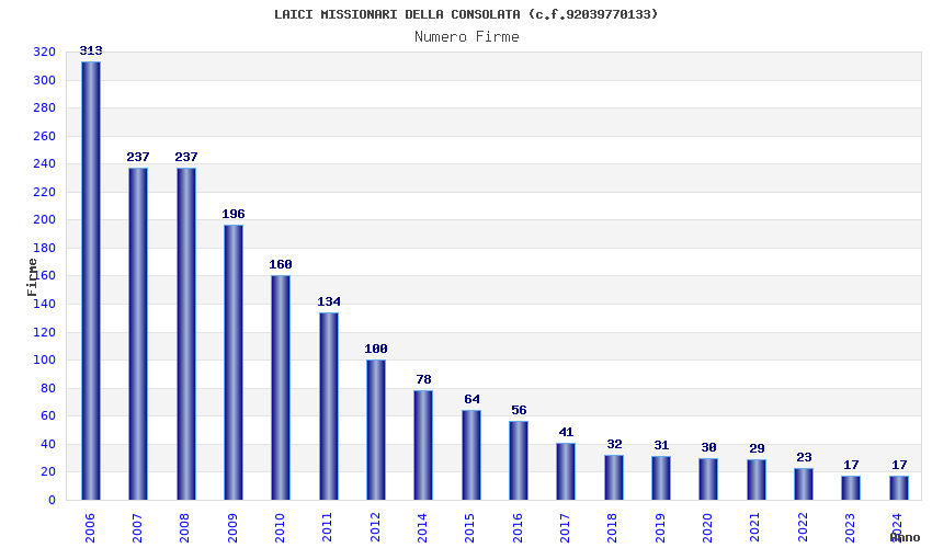 | Anno | Firme | Importi | Media | Naz. | Reg. | Prov. | Comu. |