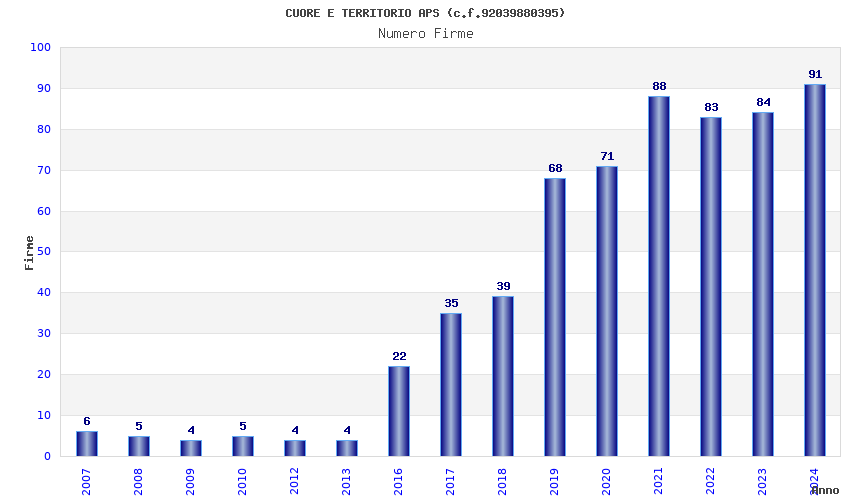| Anno | Firme | Importi | Media | Naz. | Reg. | Prov. | Comu. |