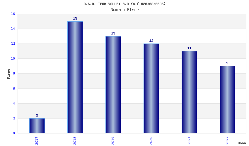 | Anno | Firme | Importi | Media | Naz. | Reg. | Prov. | Comu. |
