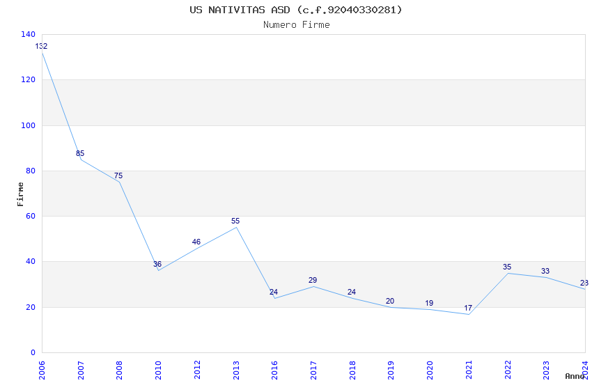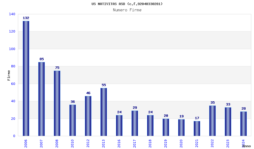 | Anno | Firme | Importi | Media | Naz. | Reg. | Prov. | Comu. |