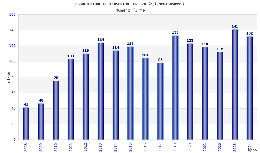 | Anno | Firme | Importi | Media | Naz. | Reg. | Prov. | Comu. |