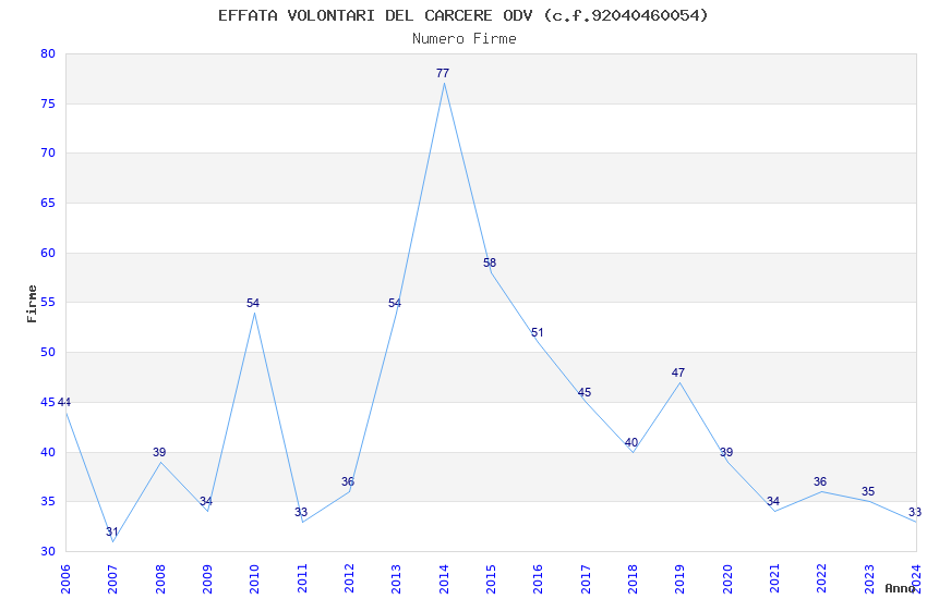 | 2014 | 77 | 3.365,17 | 43,70 | 15.263 | 1.137 | 43 | 22 |