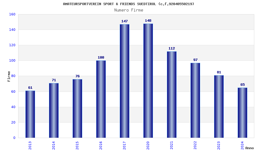 | Anno | Firme | Importi | Media | Naz. | Reg. | Prov. | Comu. |