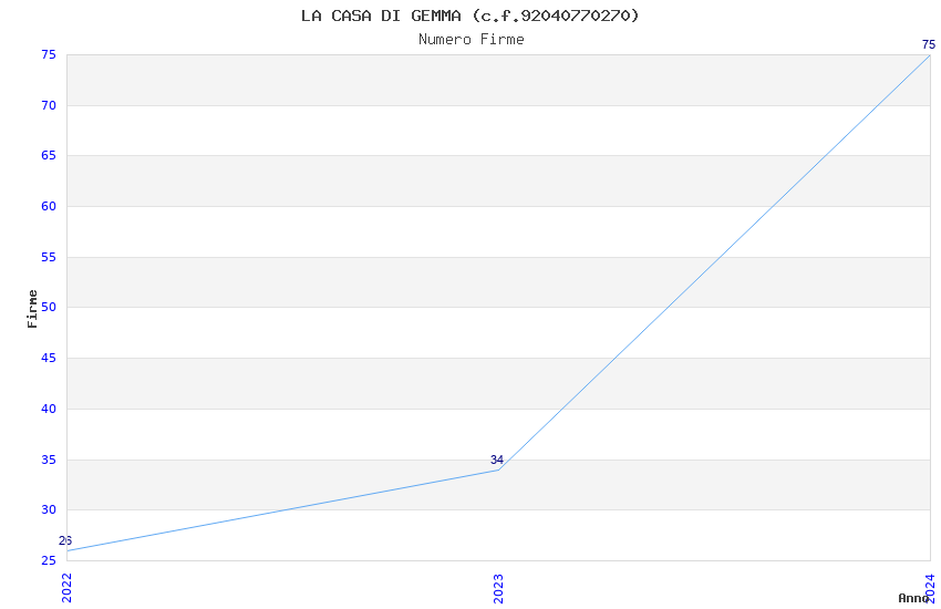 | 2024 | 75 | 2.602,15 | 34,70 | 19.600 | 1.794 | 261 | 5 |