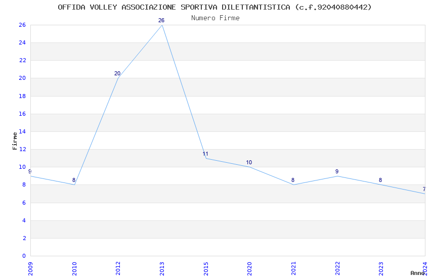 | 2013 | 26 | 593,49 | 22,83 | 33.046 | 841 | 104 | 3 |