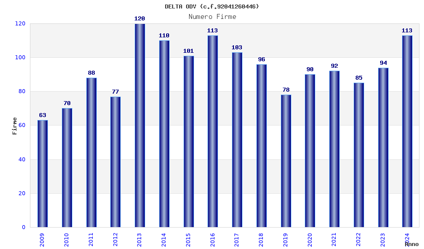 | Anno | Firme | Importi | Media | Naz. | Reg. | Prov. | Comu. |