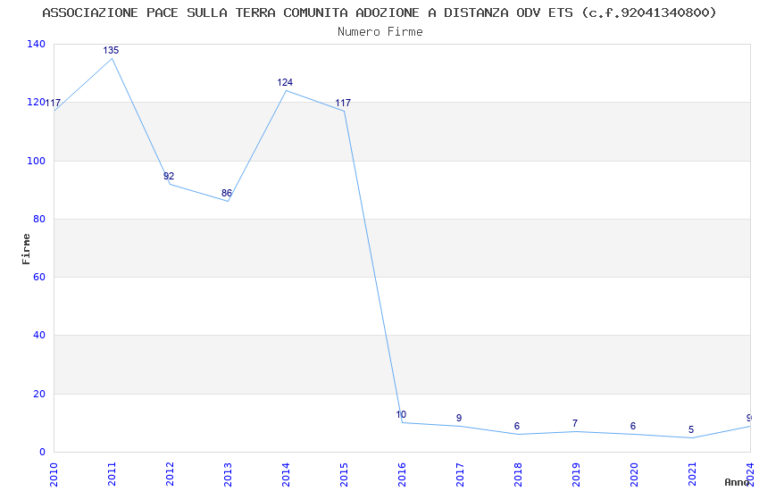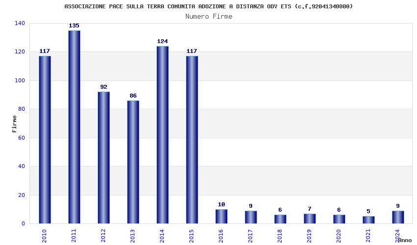 | Anno | Firme | Importi | Media | Naz. | Reg. | Prov. | Comu. |