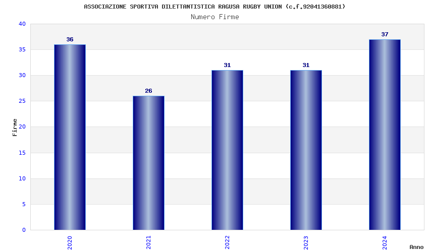 | Anno | Firme | Importi | Media | Naz. | Reg. | Prov. | Comu. |