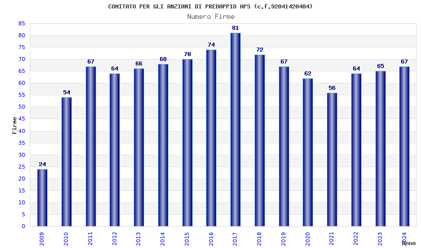 | 2024 | 67 | 1.232,88 | 18,40 | 33.373 | 2.886 | 265 | 5 |