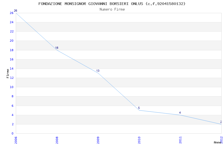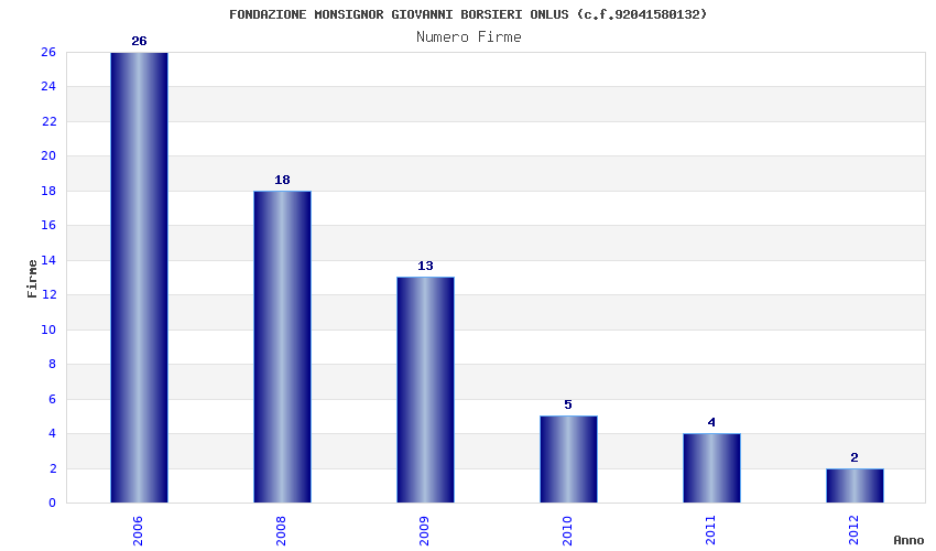 | Anno | Firme | Importi | Media | Naz. | Reg. | Prov. | Comu. |