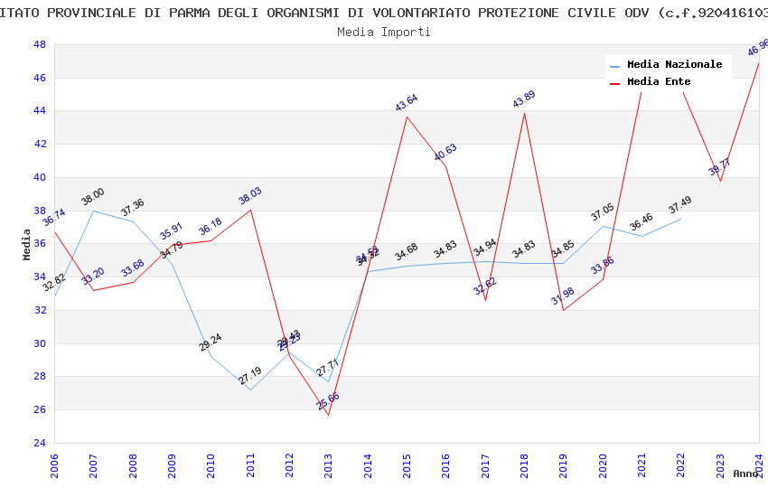 | Anno | Firme | Importi | Media | Naz. | Reg. | Prov. | Comu. |