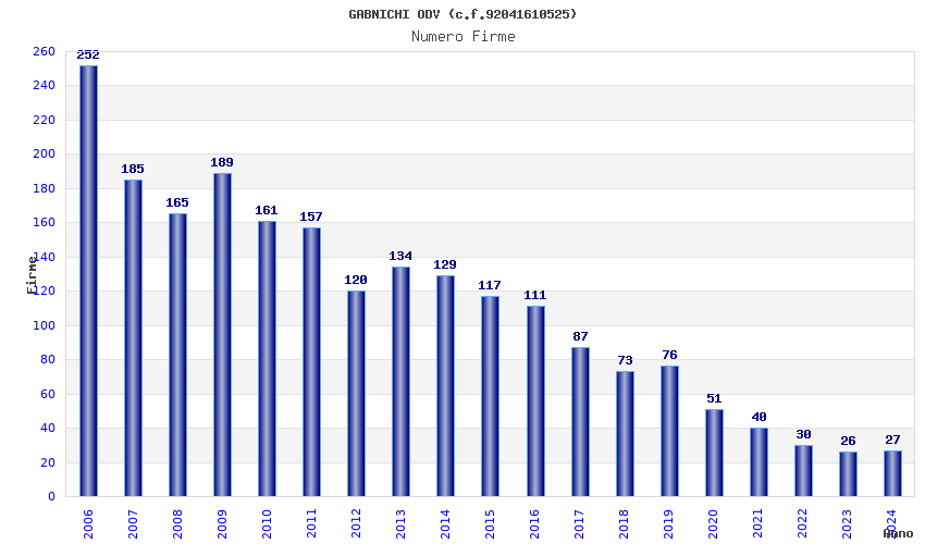 | Anno | Firme | Importi | Media | Naz. | Reg. | Prov. | Comu. |