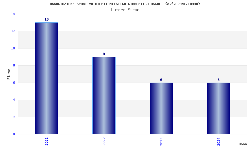 | Anno | Firme | Importi | Media | Naz. | Reg. | Prov. | Comu. |