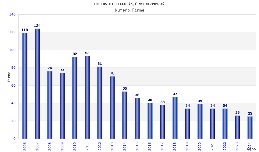 | Anno | Firme | Importi | Media | Naz. | Reg. | Prov. | Comu. |