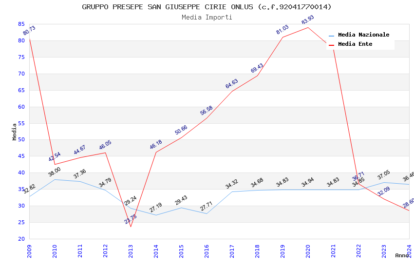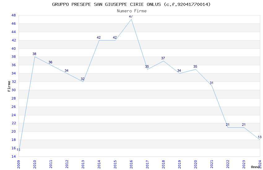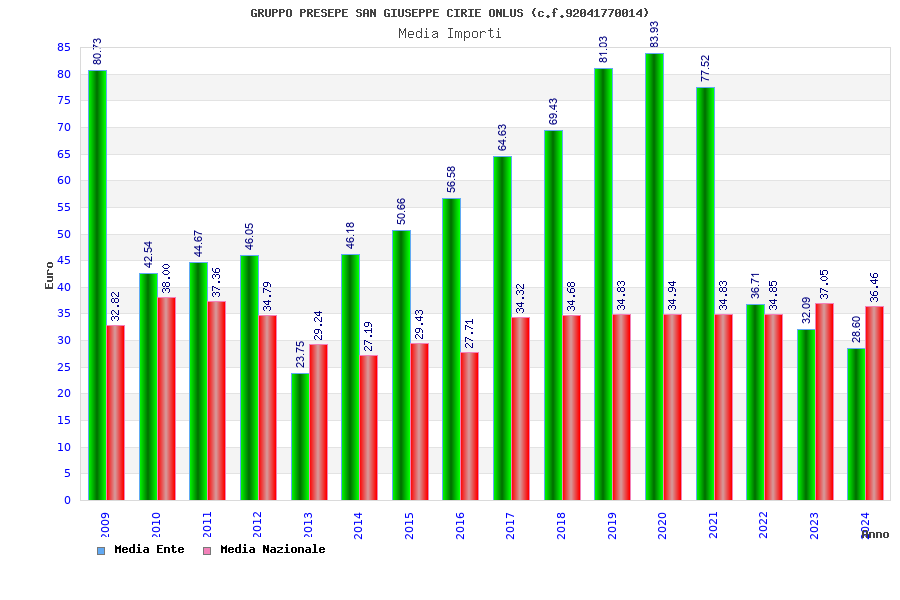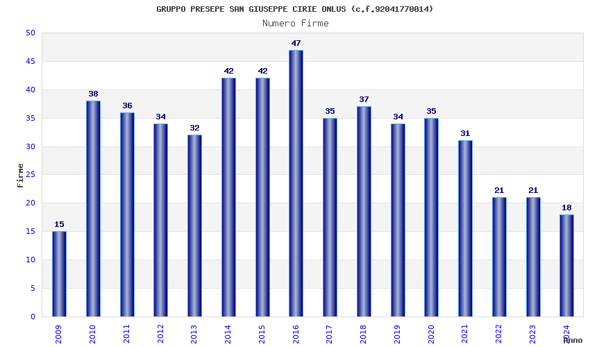 | Anno | Firme | Importi | Media | Naz. | Reg. | Prov. | Comu. |