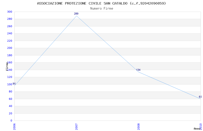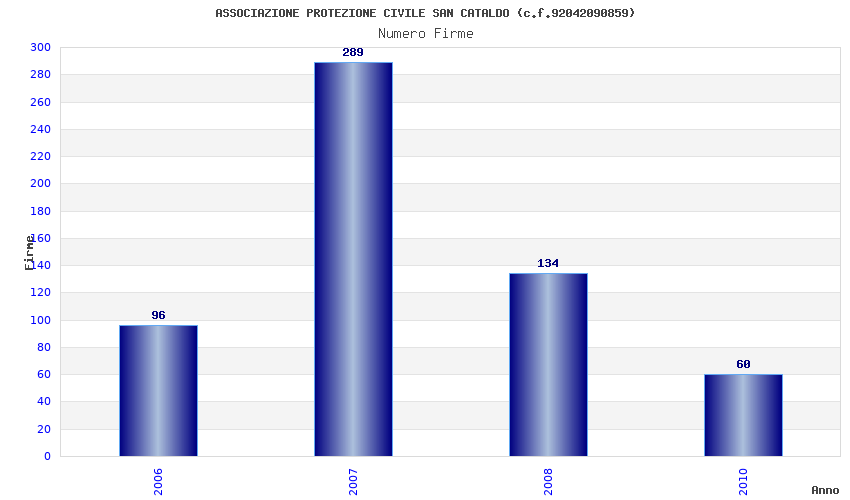 | Anno | Firme | Importi | Media | Naz. | Reg. | Prov. | Comu. |