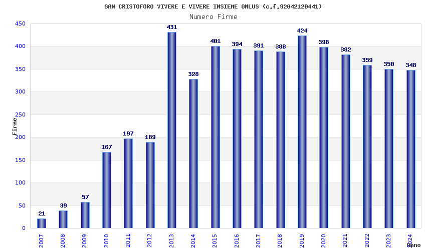 | Anno | Firme | Importi | Media | Naz. | Reg. | Prov. | Comu. |