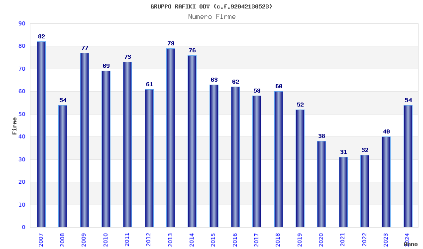 | 2007 | 82 | 3.249,48 | 39,63 | 9.996 | 676 | 74 | 32 |