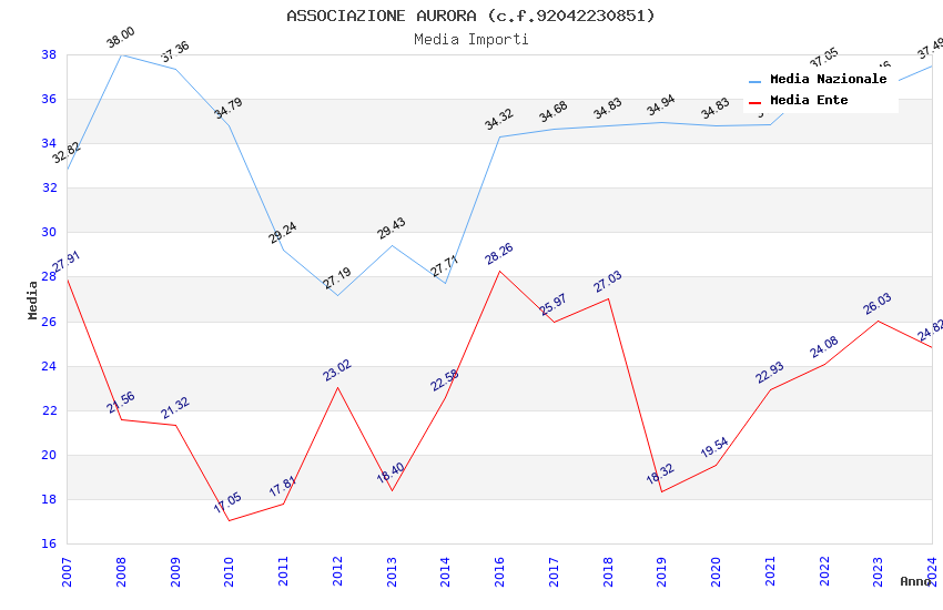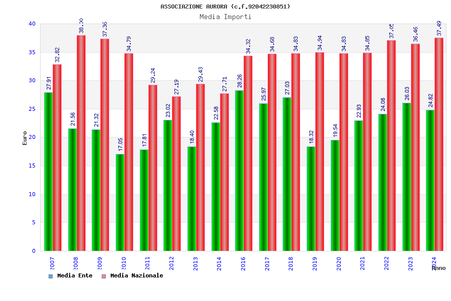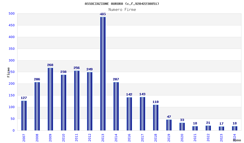 | Anno | Firme | Importi | Media | Naz. | Reg. | Prov. | Comu. |